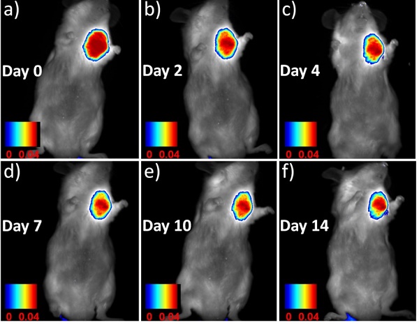 针对以上问题,张玉建博士将“大体积”基团引入十字交叉结构分子中,实现了聚集态下TICT的发光。该基团存在拉大了分子间距离,为分子构象旋转提供空间,减弱了分子的聚集荧光淬灭。与吉林大学邹勃教授合作,利用原位红外,紫外可见光吸收光谱和稳态荧光光谱,系统地研究了在聚集和单分子状态下分子构象改变对TICT发光性质的影响。最后将该材料应用到静压力传感,实现了从橙色到近红外的颜色转变,同时在生物活体上表现很好的生物相容性和光稳定性。