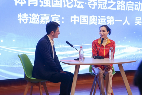 吴敏霞出席了体育学院“体育强国论坛·夺冠之路”活动,分享了她参加四届奥运会比赛的历程,以及平时刻苦训练的点点滴滴,鼓励学生们在追求梦想的路上不怕苦不怕累,勇敢迎接各种困难和挑战,每个人都可以成为自己心中的冠军。