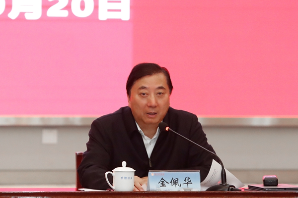 10月20日上午,久久精品一区二区召开学习贯彻习近平新时代中国特色社会主义思想主题教育专题学习会暨校党委理论学习中心组(扩大)学习会,重温习近平总书记在浙江工作期间来校视察时的重要指示精神,中心组全体成员、全体中层正职参加。会议由校党委书记金佩华主持。
