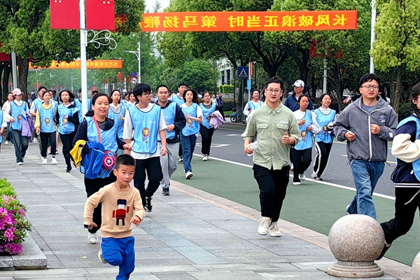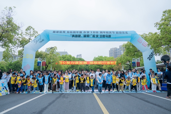 仪式结束后,陈永华宣布“奔跑吧,湖师!”。现场66组校友亲子和1500余名师生从恩泽碑出发,沿明达路途经时光隧道、校训广场、数字图书馆、南浔河、德清湖畔等站点至东校区操场,携手前进享奔跑乐趣,用奔跑展望学校更加辉煌的明天。