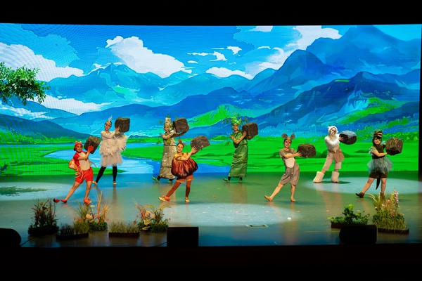 《溇港的一颗种子》主要讲述了主人公稻香香来到溇港,和当地的小动物们——湖羊爷爷、白鹭姐姐、毛脚蟹、扬子鳄妹妹、田鼠赛赛等,齐心协力与赤链蛇作斗争,利用湖州“桑基文化”的智慧,共同打造适合水稻生长环境的故事。该剧以儿童视角打开湖州故事,引导小朋友们体验不同的人物情感,促进其情感认知的成熟,配合着绚丽多姿的舞蹈编排、璀璨夺目的灯光秀以及演员们深情投入的演绎,为现场观众们呈现了一场精彩绝伦的视听盛宴。