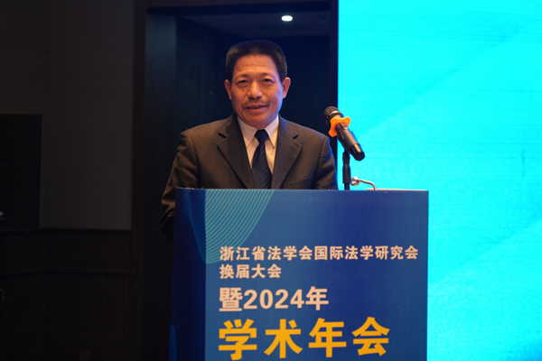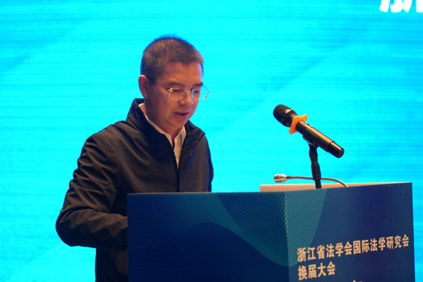 浙江省法学会副会长、浙江大学光华法学院院长胡铭在致辞中表示,浙江省法学会国际法学研究会致力于加强涉外法治建设,要维护以国际法为基础的国际秩序,推动国际关系法治化。其围绕“构建人类命运共同体与全球治理:国际法的作用”学术年会主题,提出要始终坚持党对国际法工作的有力领导,深入学习贯彻习近平法治思想、习近平外交思想,继续加强理论创新,为国际法的发展提供更多中国方案,同时也要注重国际法学学术研究成果的运用,服务新时代中国特色大国外交,积极为推进中国式现代化贡献法治力量。