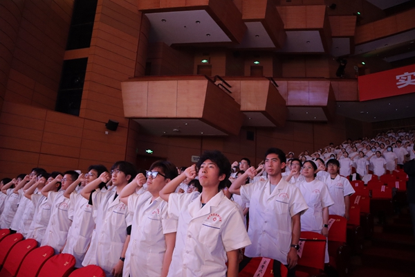 据悉,一年一度的庆祝“5.12”国际护士节暨准护士宣誓仪式是医学院(护理学院)的校园文化品牌,也是全面落实“立德树人”根本任务,着力提升“新医科”人才培养质量的重要举措。本年度,医学院(护理学院)首次将“同上一堂大思政课”与仪式教育相结合,组织学生走出校园,深入学习临床一线优秀医学前辈的先进事迹,深刻感受护理职业的崇高使命和神圣职责,为护理学生系好走向临床实习岗位的“第一粒扣子”。