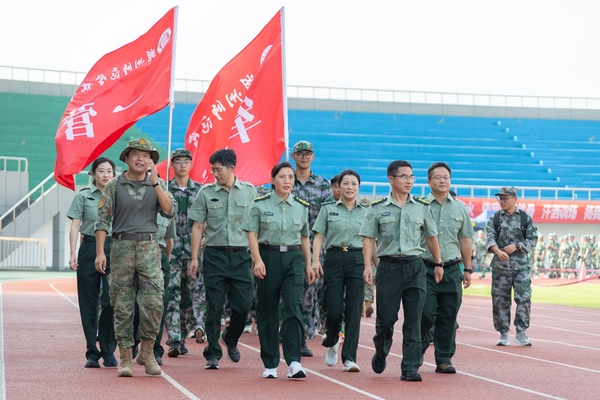 秋阳正好,斗志昂扬。9月25日上午,我校2025级新生“思政第一课”暨军训拉练活动在东校区田径场举行。校党委书记许慧霞,校党委副书记、军训旅政委丁敢真,承训部队领导、军训旅旅长高杰中校出席并全程参加拉练。