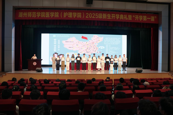 医学院(护理学院)党委书记甘顺良为全体2025级新生讲授“开学第一课”。甘书记从湖州深厚的人文底蕴切入,系统介绍了学校及学院的发展历程、人才培养、校园服务等方面情况,勉励新同学们成长为有理想、敢担当、能吃苦、肯奋斗的卓越医学人才。
