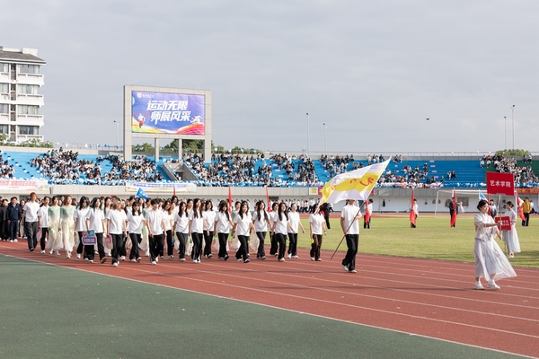 人文学院方阵昂首阔步、身姿挺拔,彰显着“人文化成、通达求新”的追求;外国语学院方阵步伐整齐有力,展现了“语通中外、学贯中西”的外院风采;艺术学院方阵身着艺术特色服装,展现了“读书学艺、弘德尚美”的蓬勃朝气;音乐学院方阵以充满青春活力的舞蹈,展现了“音正乐善、创新竞进”的精神。