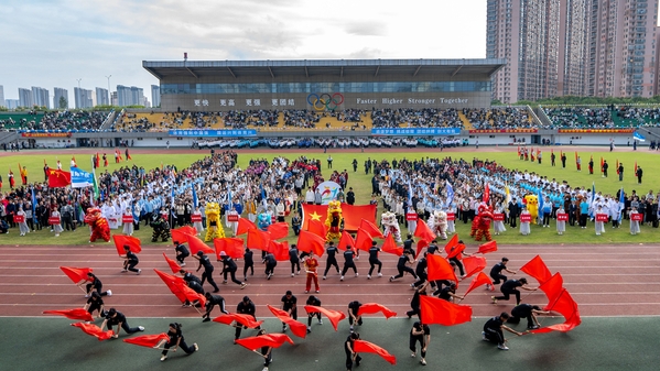 国际教育学院的留学生们身着民族特色服饰、手持各国国旗,以异域风情的舞蹈展现着多元文化魅力,展示了开放包容、热情友好的精神风貌;继续教育学院方阵步伐稳健、气势昂扬,展现着乐学笃行、继往开来的信心;教师八段锦方阵身着整齐服装,以八段锦表演展现千年养生功法的魅力,为运动会注入了文化底蕴;体育学院的武术表演和舞龙舞狮表演将开幕式推向高潮,高难度的动作伴随着激昂的旋律,展现了体院人的激情与活力。