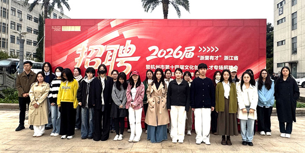 10月21日,人文学院组织相关专业共38名毕业生前往杭州,参加浙江省2026届毕业生暨杭州市第十四届文化创意人才专场招聘会。人文学院就业辅导员卢昱全程参与,为学生提供现场指导和帮助。